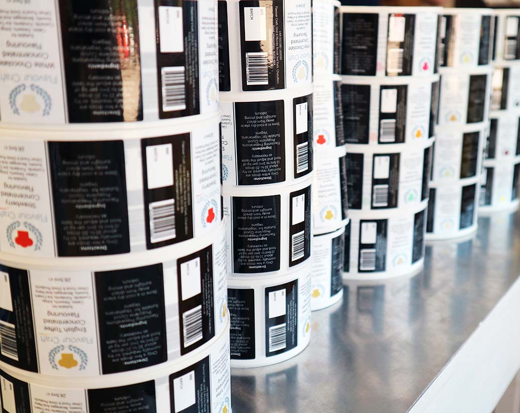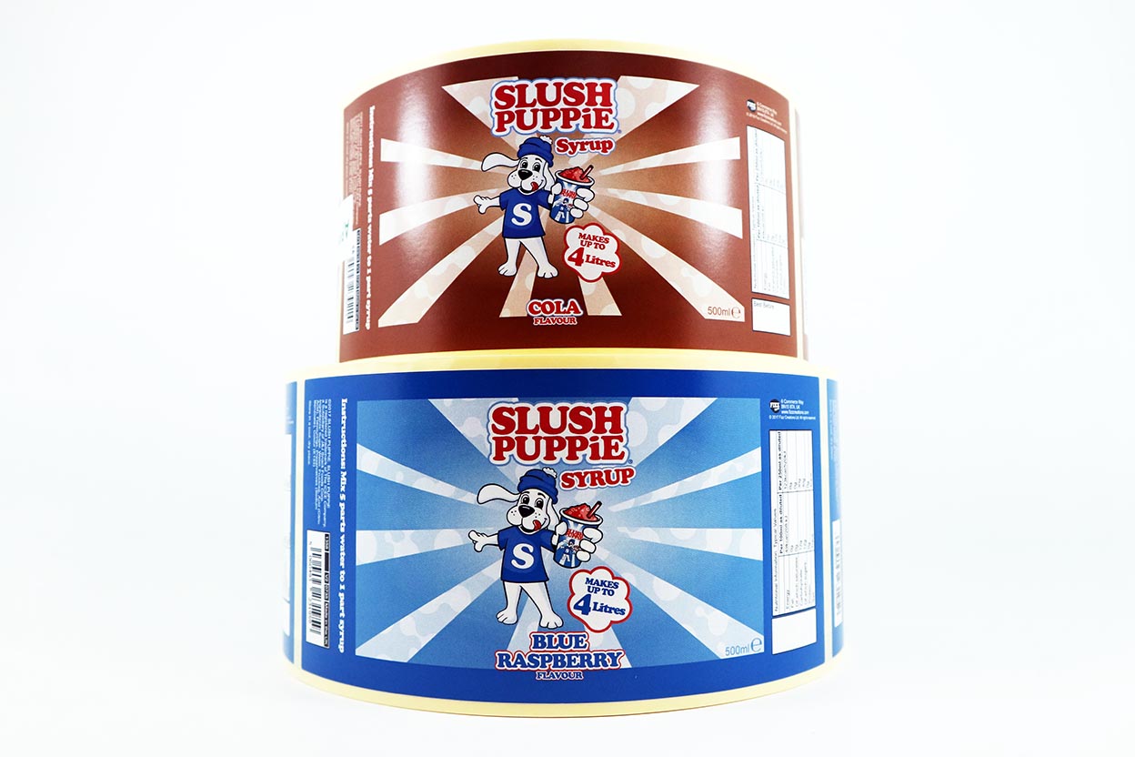 Materials available for personalised labels on rolls include polypropylene vinyl and paper. Finishes include gloss and matt.
