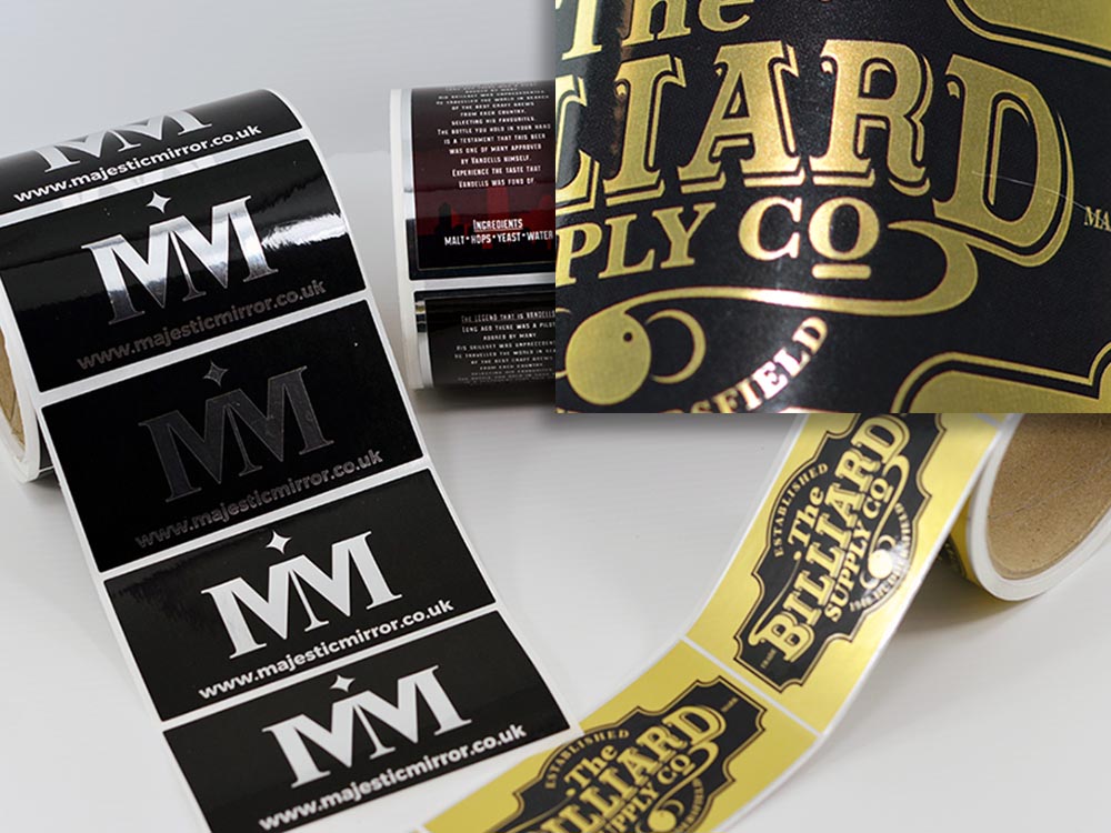 Add a splash of colour to products and packaging with multi-colour metallic stickers. With specialist metallic inks, we can print virtually any colour with a foil effect and give your logo, text, or image a metallic shine.